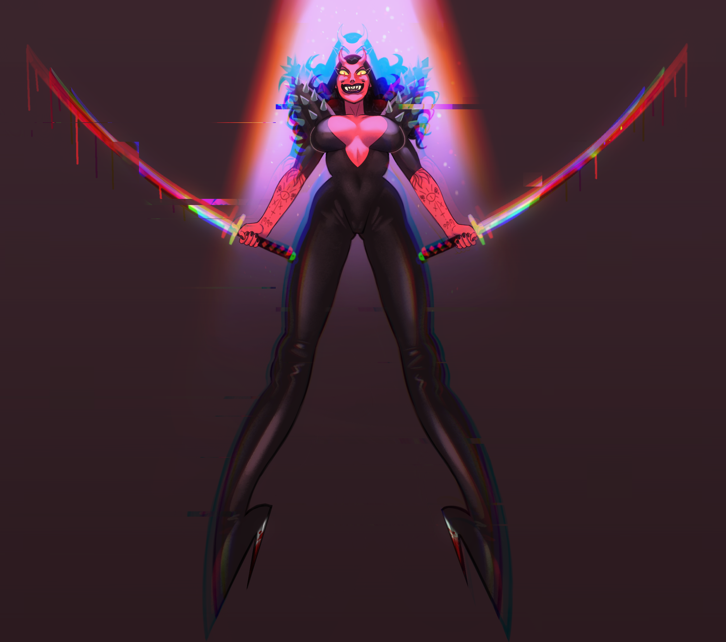 A provocative and combat-ready demon woman who can regurgitate swords